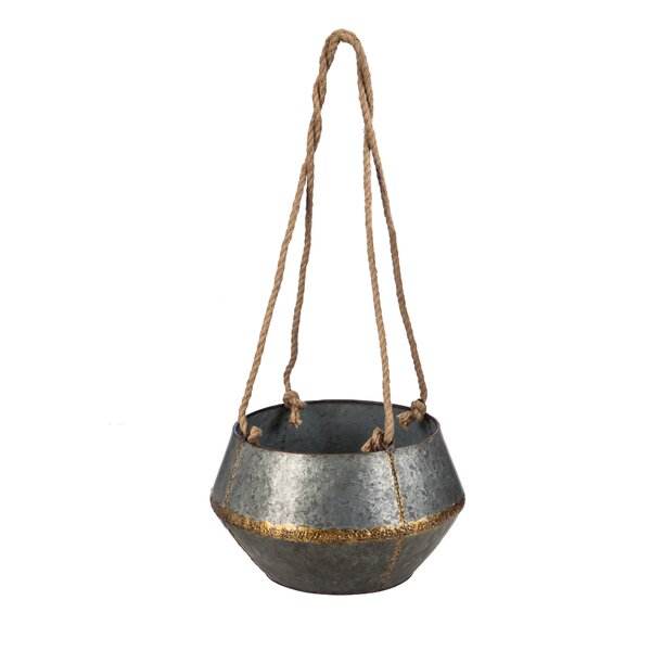 Outdoor Use Hanging Garden Planter With Metal Stand and Natural Pot Iron Bucket Black Powder Coated and For Home Decor Use
