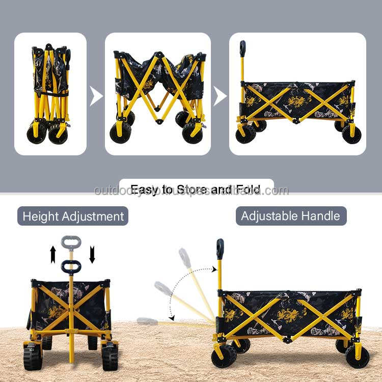 Outdoor Utility Garden Camping Cart Kids Folding Wagon with Roof Outdoor and Telescopic Push bar