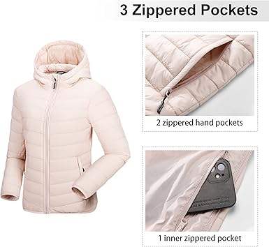 Outdoor Ventures Women's Casual Canvas Full-Zip Puffer Jacket Packable Lightweight Winter Coat with Stand Collar Quilted Hood