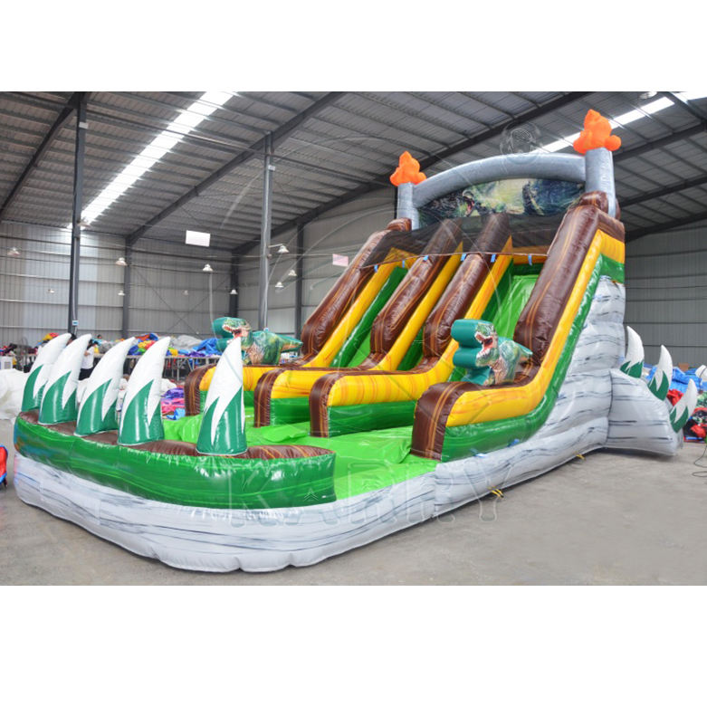 Outdoor Water Game Dino Park Inflatable Jumping Castle Water Slide with Pool Water Park Inflatable Double lane Slide