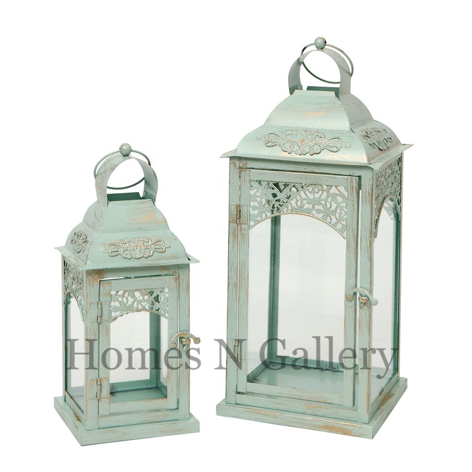 Outdoor Waterproof Iron Garden Decor Round Solar Wind Lantern Christmas Home Windproof Metal Candle Holders Lanterns Packed Box