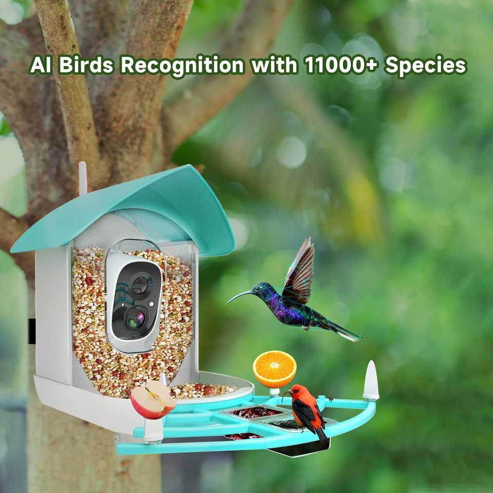 Outdoor Waterproof Solar Panel Bird Feeder with HD 2.5k Mobile Phone Remote Viewing Camera Feed the Wild Birds