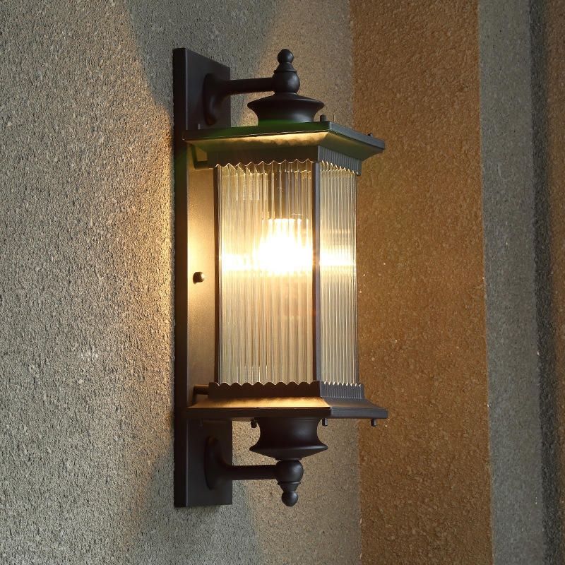 Outdoor Waterproof Vintage Black Cylinder Garden Wall Light E27 Solar LED Square Lamp Body Wall Mounted