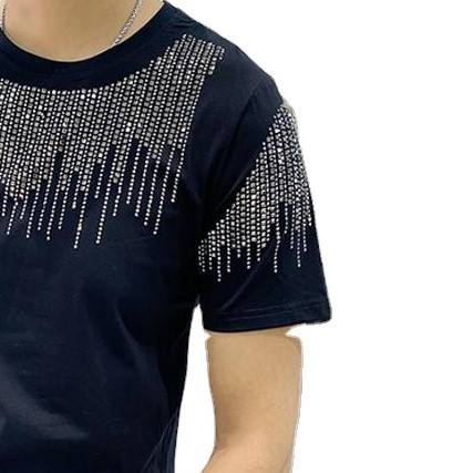Men Rhinestone T Shirt Outdoor Casual Graphic Rhinestone Tee Fashion Custom Print OEM Wholesale