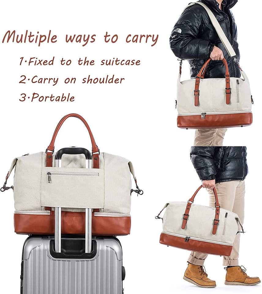 Outdoor Weekender Duffle Luggage Bag Fashion Custom Geometric OEM Factory Outlet Travel Pu Leather for Man Women White Unisex
