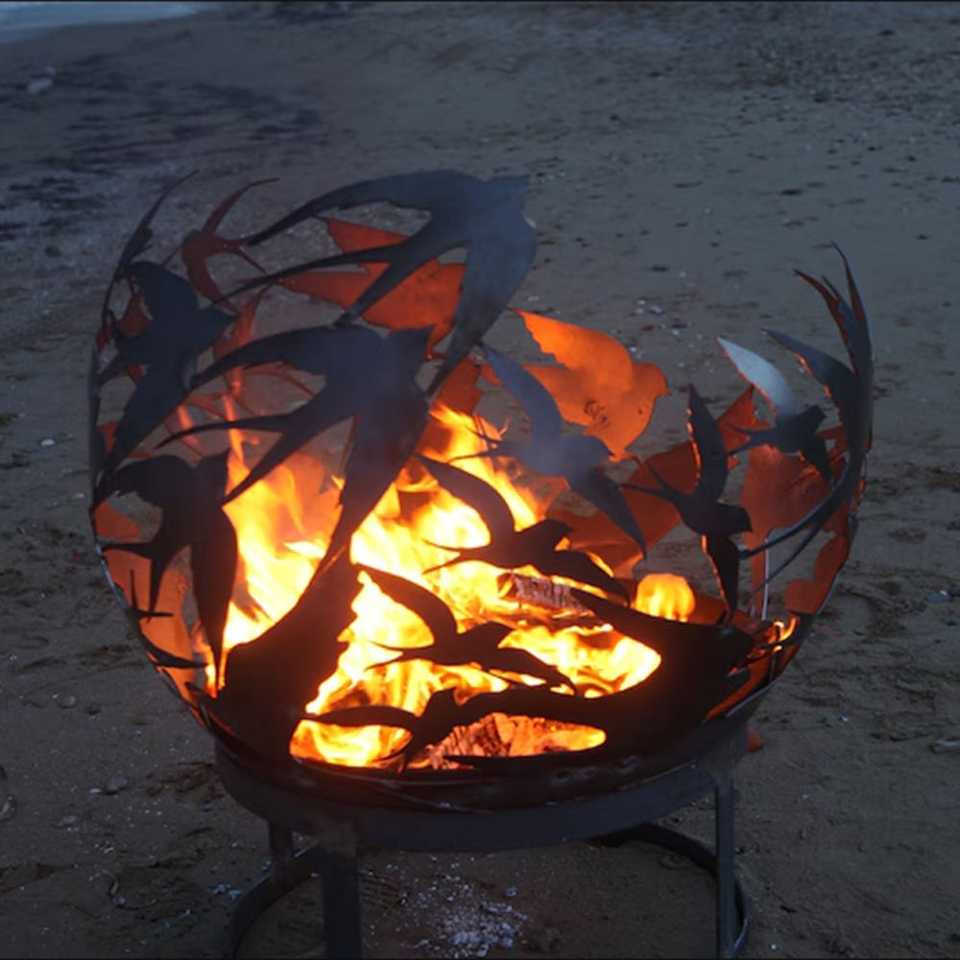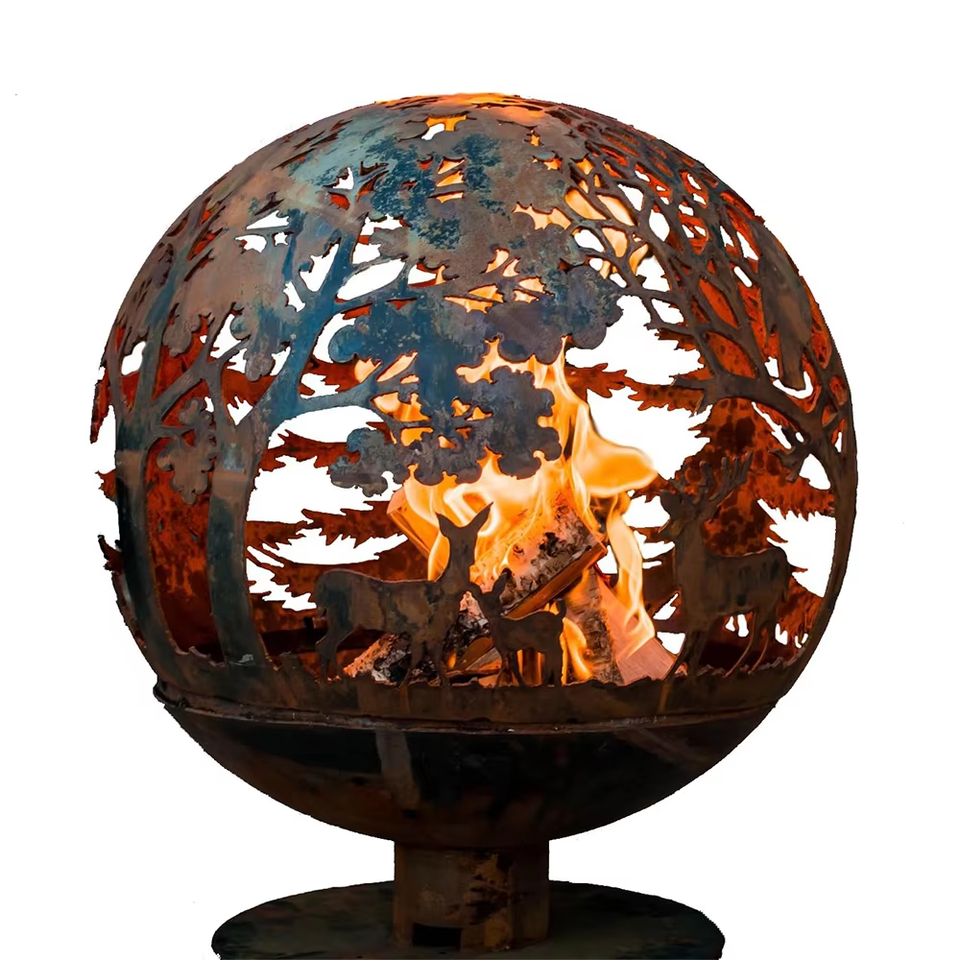 Outdoor Wood Burning Freestanding Rustic Eco-Friendly Corten Steel Sphere Dome Leaf Fire Pits Fire Ball Rusty Surface