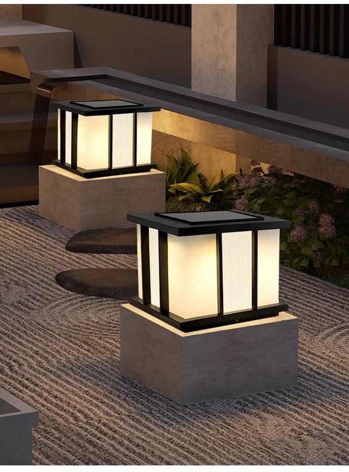 Outdoor IP65 Waterproof Glass LED Pillar Light with Light Sensor & Dimmable 5-Year Warranty for Villa Landscape