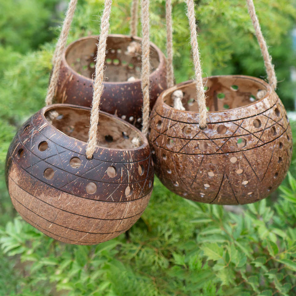 Outdoor Indoor Hanging Nature Coconut Shell Pots for Flower and Plants Handmade OEM Accepted