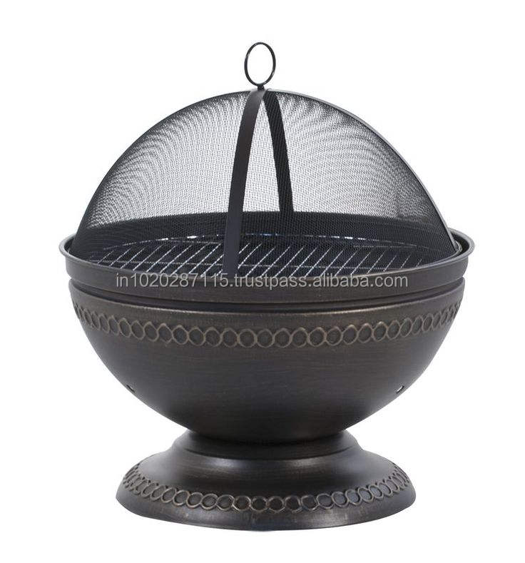 Outdoor iron fire pit bowl with stand perfect for farmhouse style backyard evening fire lighting decor