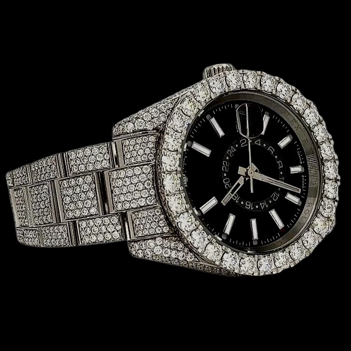 Outstanding Chronograph Fully Iced Out Moissanite Diamond Black Color Dial Customized Man's Hip Hop Fashion Wrist Watch