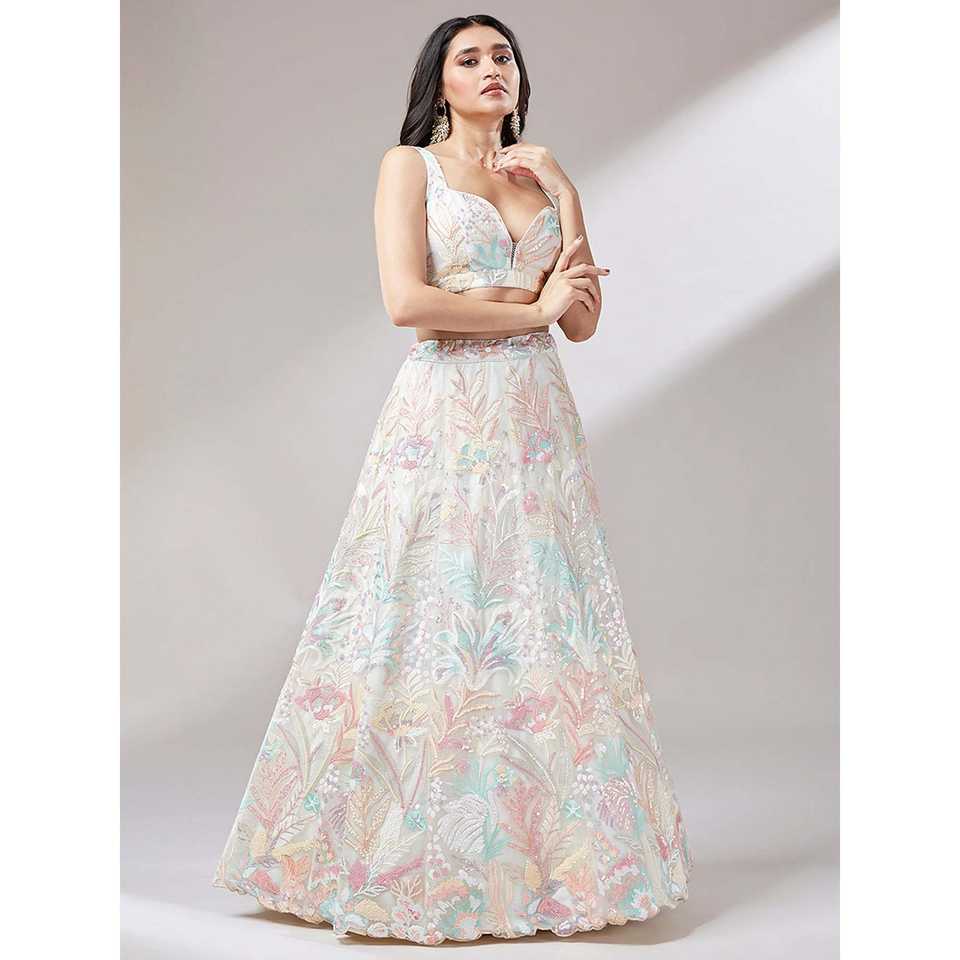 Outstanding Off-White Sequins Net Lehenga Choli With Dupatta