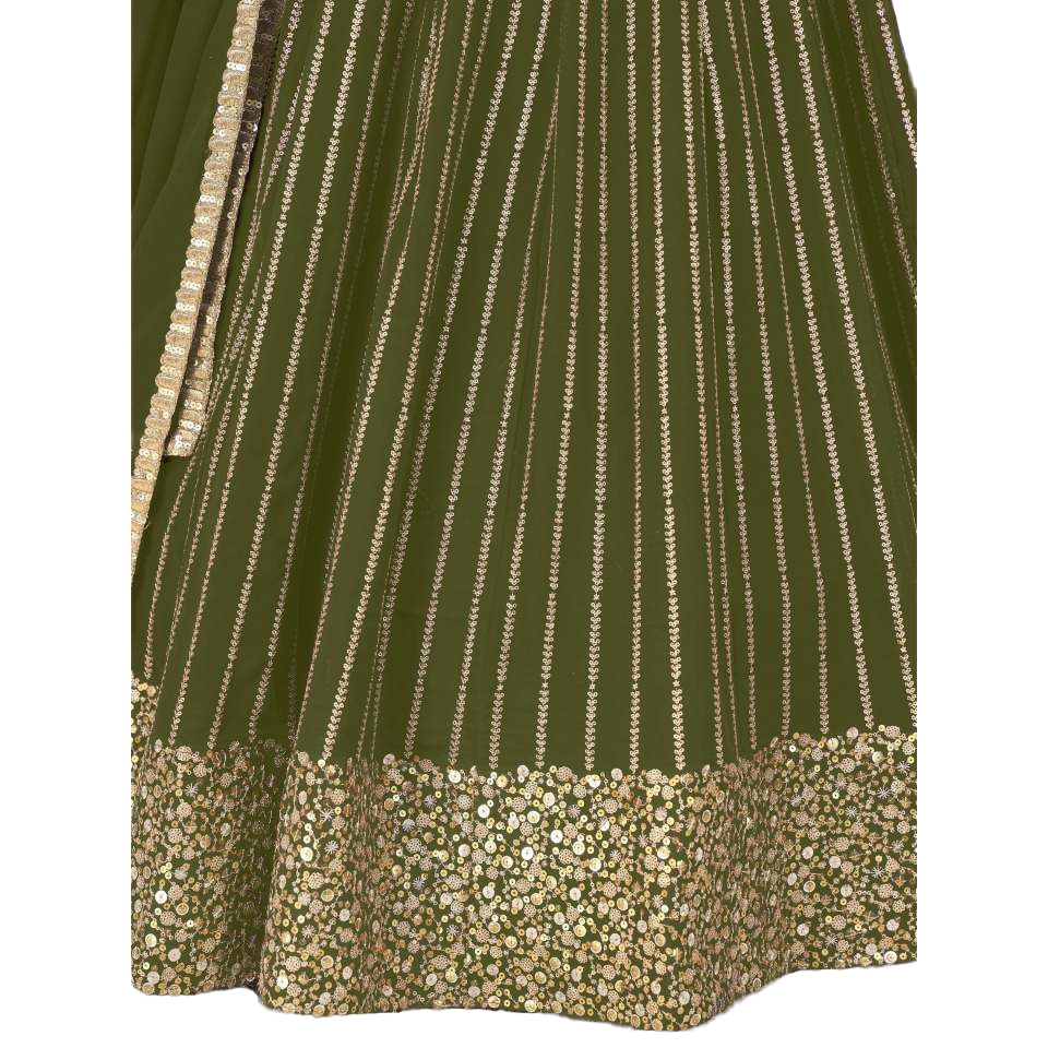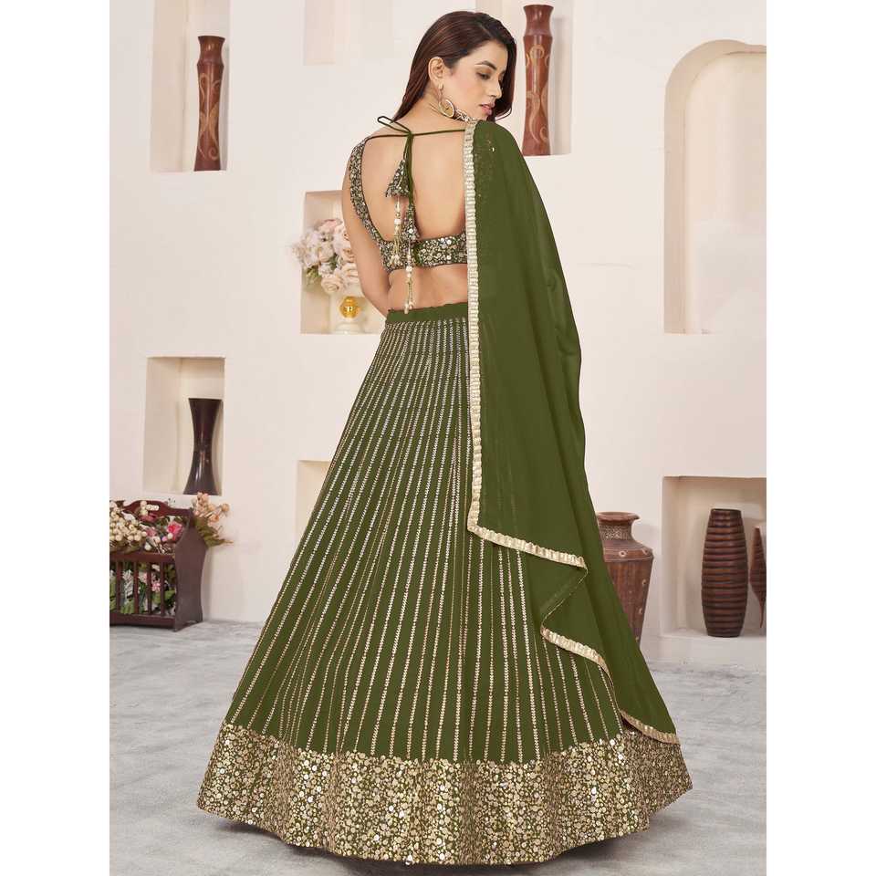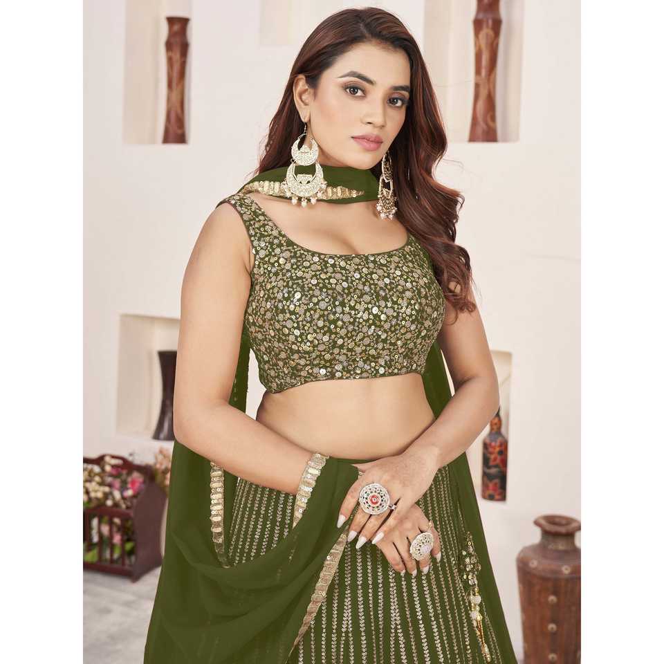 Outstanding Zeel Clothing Green Sequins Georgette Semi-Stitched Mehendi Wear Lehenga Choli