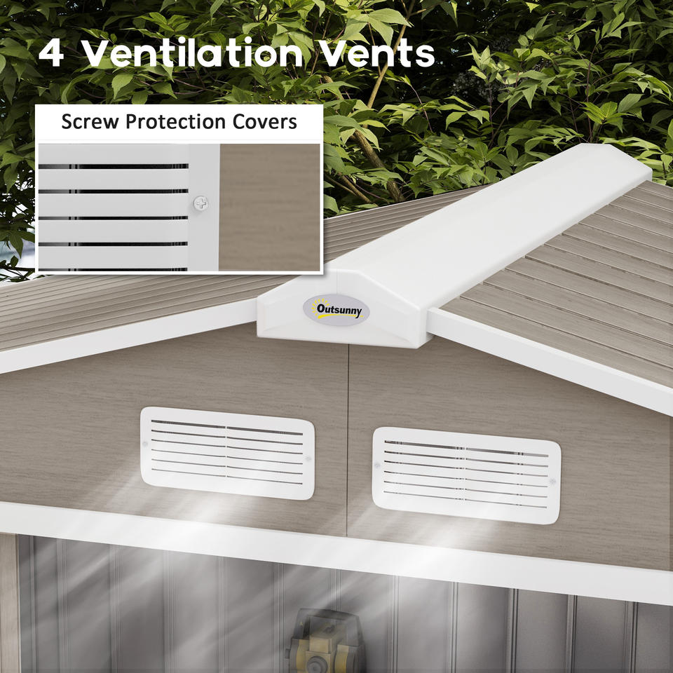 Outsunny Metal Garden Shed with Vents and Double Sliding Door, 2.1x1.3m, Light Brown
