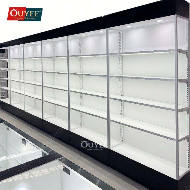 Ouyee Led Light Cigarette Wood Display Shelves Glass Shop Display Cabinets Smoke Shops Supplies Glass Tobacco Display Rack