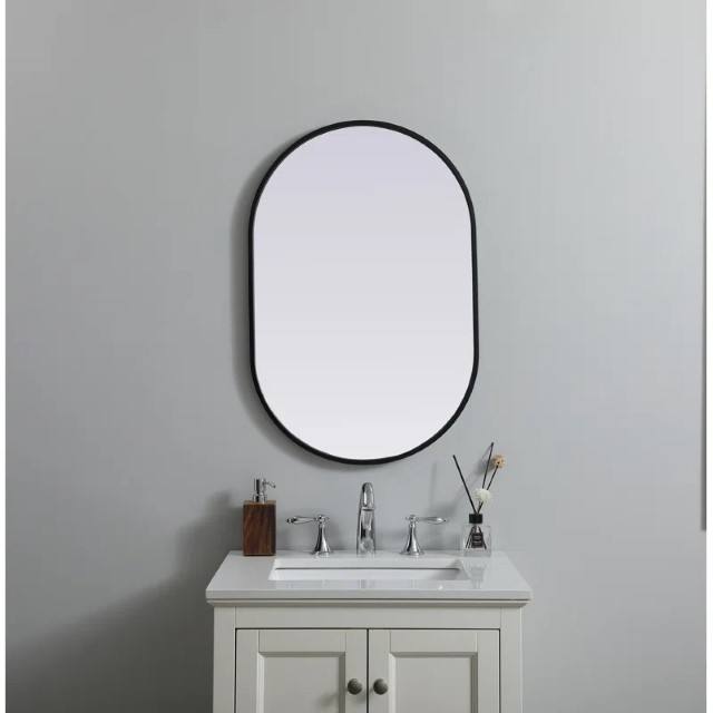 Oval Aluminium Metal Framed Black Mirror for Bathroom Vanity Wall Decor Modern Design Thin Profile Elegant Style Contemporary