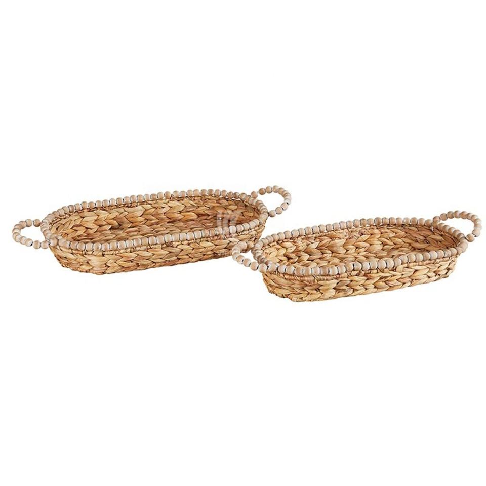 Oval Artisan Handmade Bread Basket, Natural Woven Water Hyacinth Tray for Bakery and Food Display, for Bread and Fruits