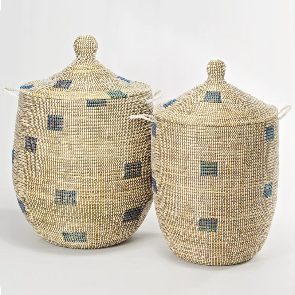 Oval Bamboo Seagrass Laundry Basket with Handles Foldable Storage Bin for Clothes Toys Organizer Handmade Vietnam