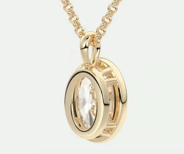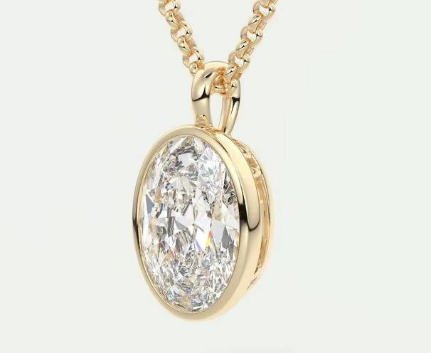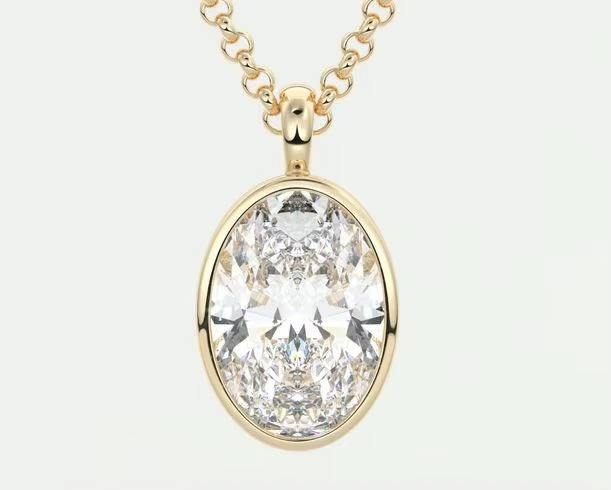 Oval Bezel Set VVS Moissanite Baguette Pendant Necklace Two Tone Silver & Gold Hip Hop Iced Design Mainly Made of Charms