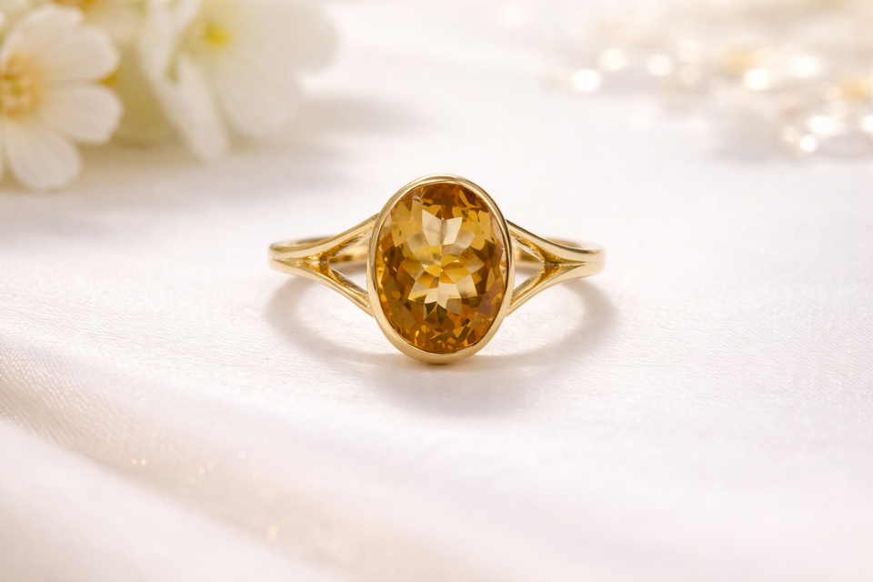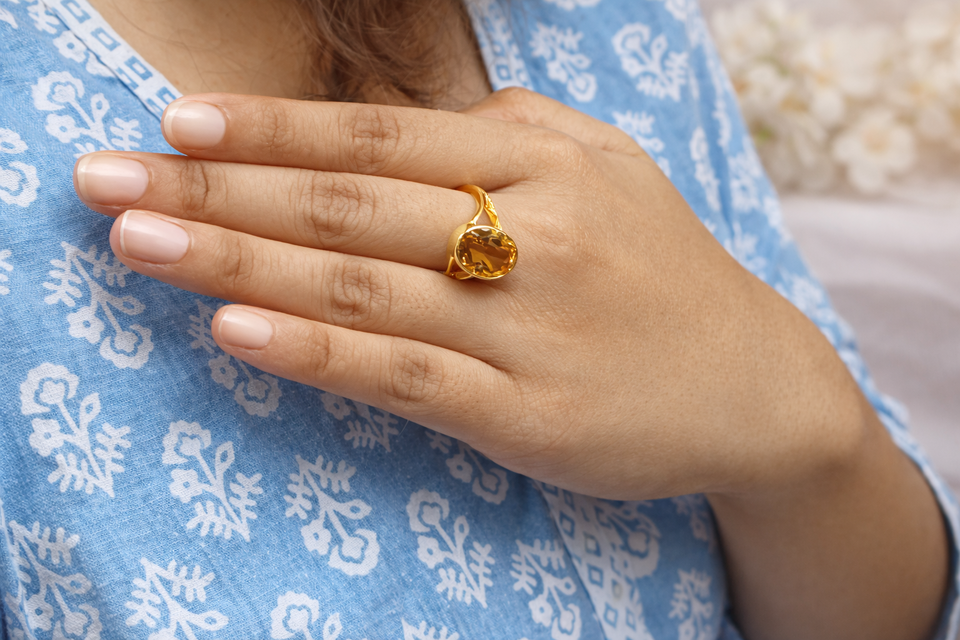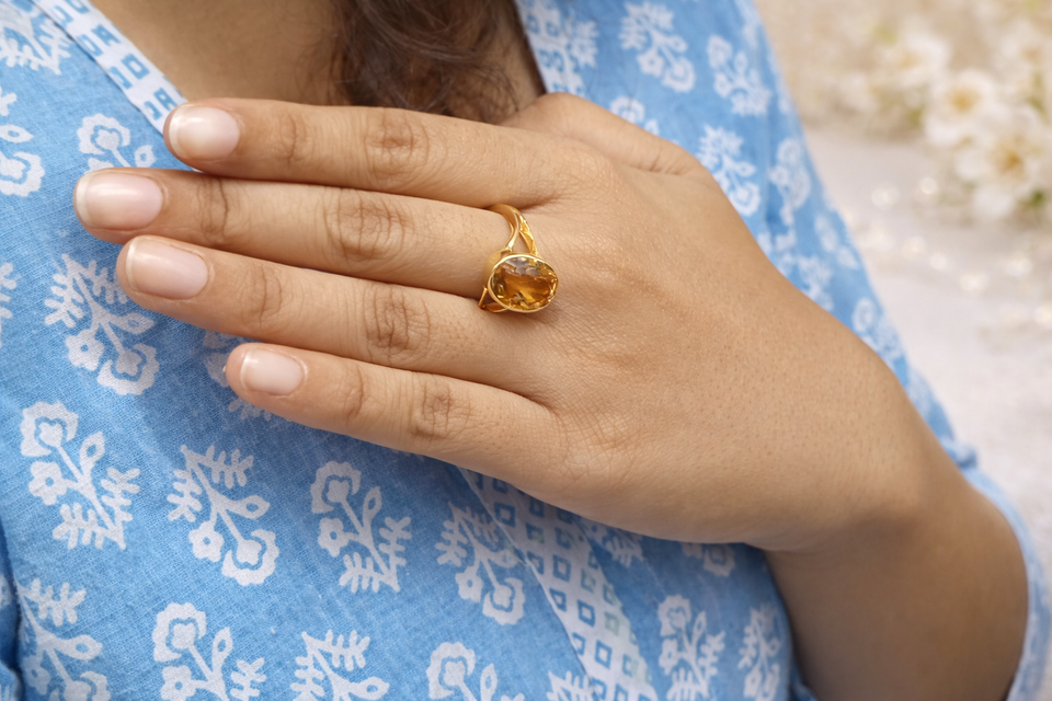 Oval Citrine Quartz 925 Sterling Silver Handmade Ring - November Birthstone Stackable Rings For Unisex