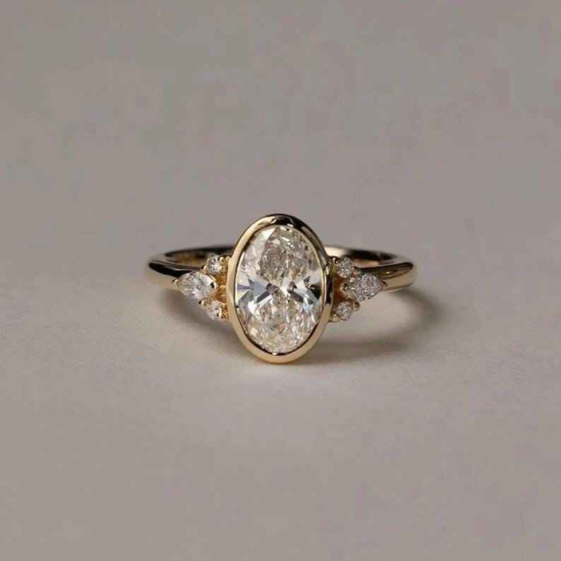 Oval Cut 1.01CT Bezel Set Lab Grown Diamond Luxury Signet Ring 14K Solid Gold For Unisex Fine Jewelry Gift For Wedding Occasion