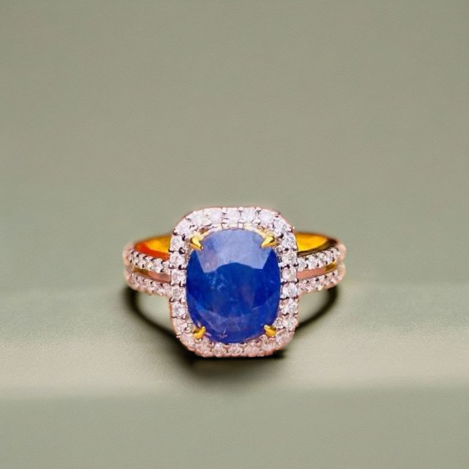 Cut Blue Moissanite Luxury Engagement Ring Unique September Birthstone Anniversary Sterling Silver Platinum Plated Prong Setting