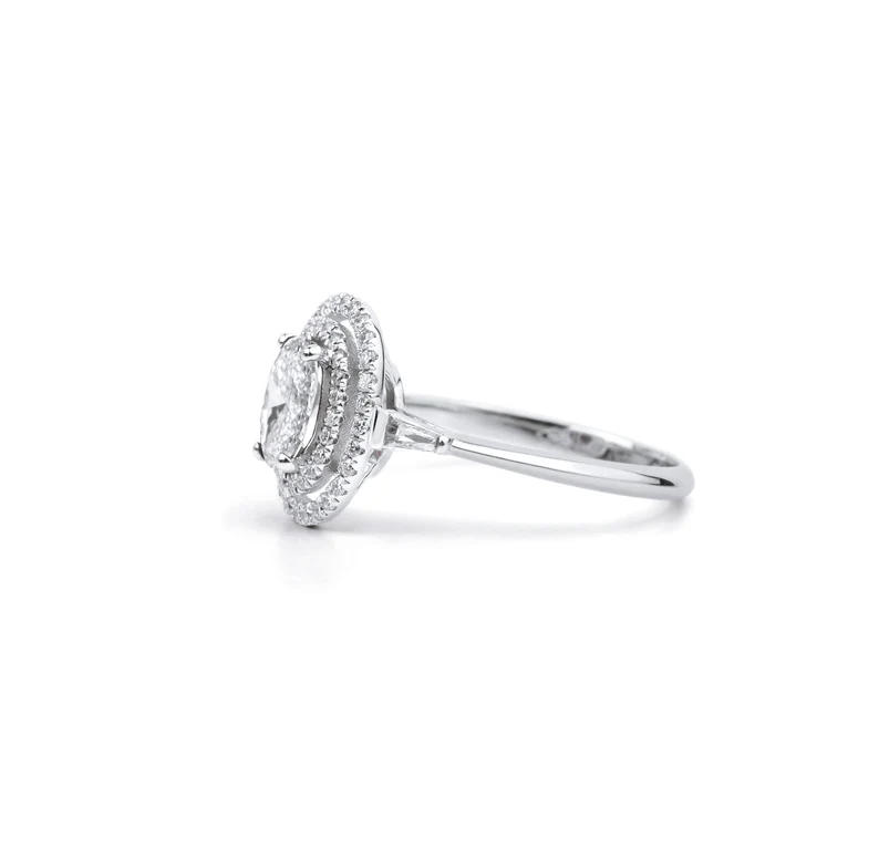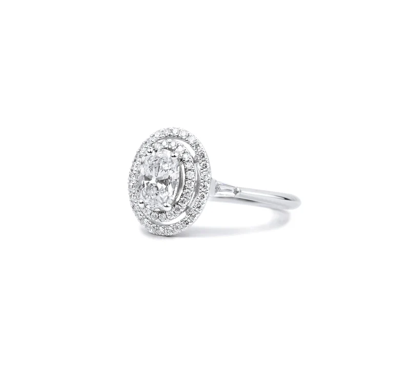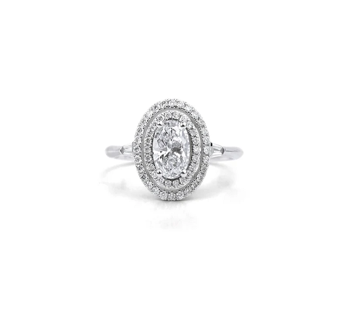 Oval Cut Diamond Engagement Ring With Double Frame Setting White Gold Unique Vintage Inspired Bridal Ring Customizable Jewelry