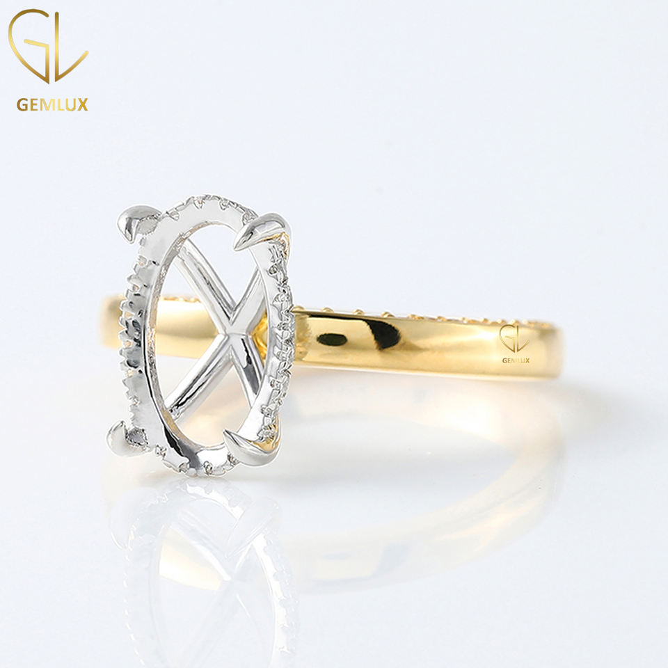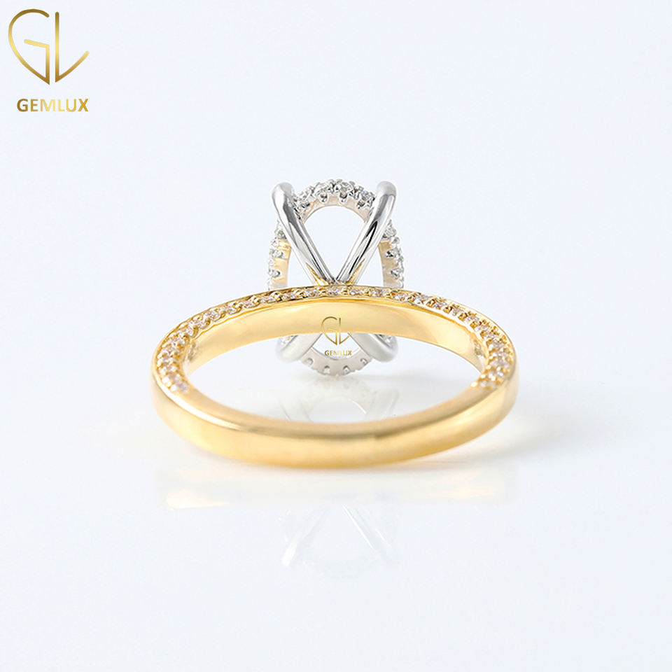 Oval Cut Diamond Semi Mount Solitaire Lab Grown Diamond Hidden Halo Engagement Ring for Women