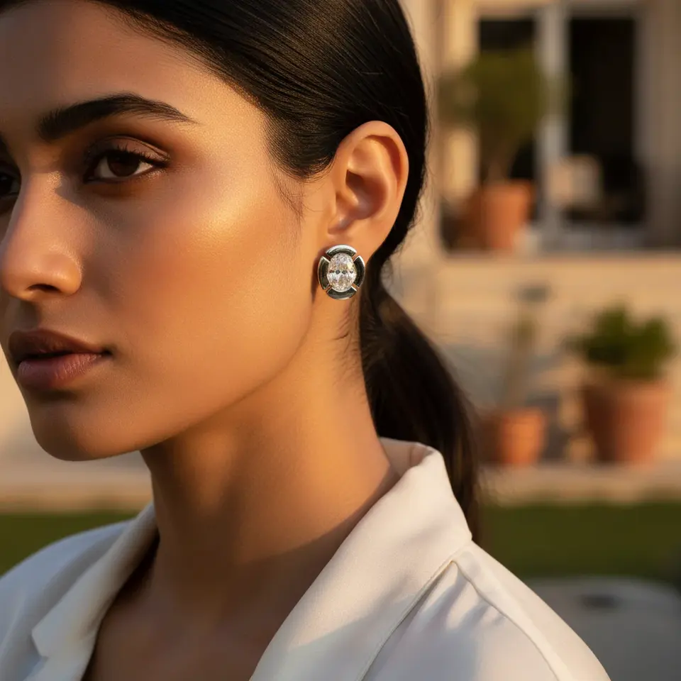 Oval Cut Diamond Stud Earrings for Women Silvers Flower Design