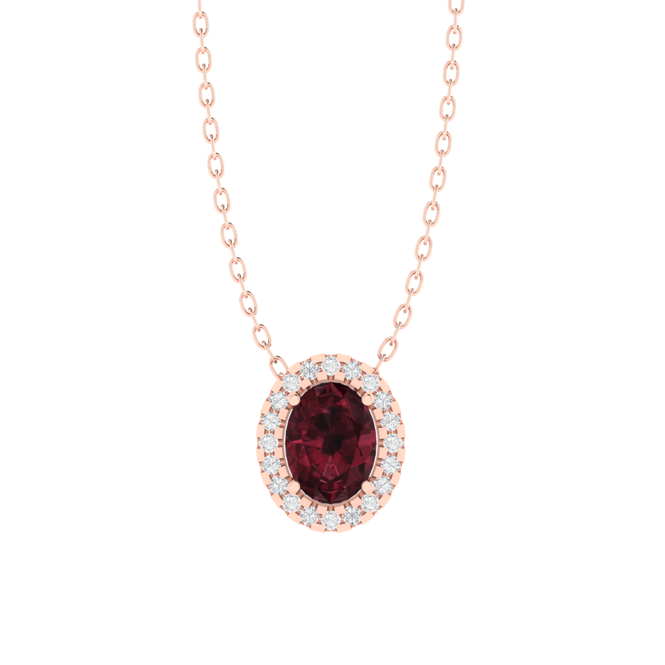 Oval Cut Garnet Cubic Zirconia Gemstone Pendant 18-Inch Chain Rhodium/Yellow/Rose Gold Plated Sterling Silver Fine Necklace