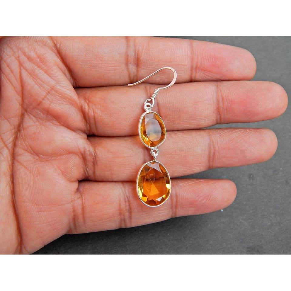 Oval Cut Genuine Citrine 925 Sterling Silver Earrings Fashionable Jewelry Gemstone Women's Gift