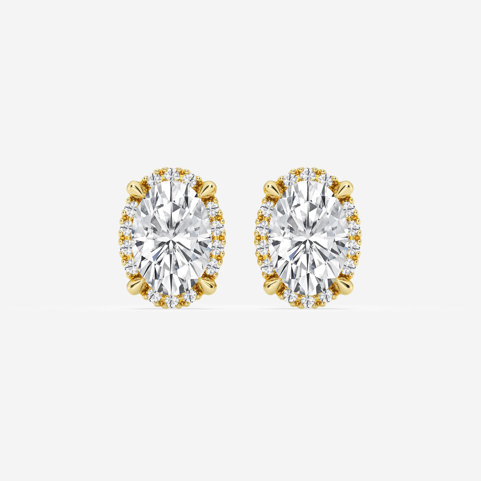 Oval Cut Halo Lab Grown Diamond Stud Earrings 18K Gold Engagement Wedding CVD/HPHT Diamond Studs for Women