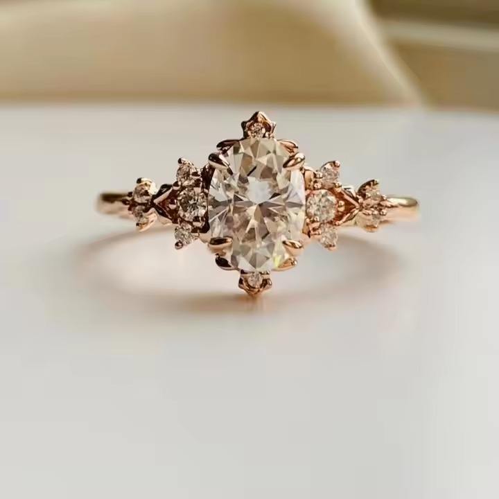Oval Cut Lab Grown Diamond Ring Unique 14k Gold Ring for Romantic Bride Whimsical Fantasy Engagement Ring Gold Fine Jewelry