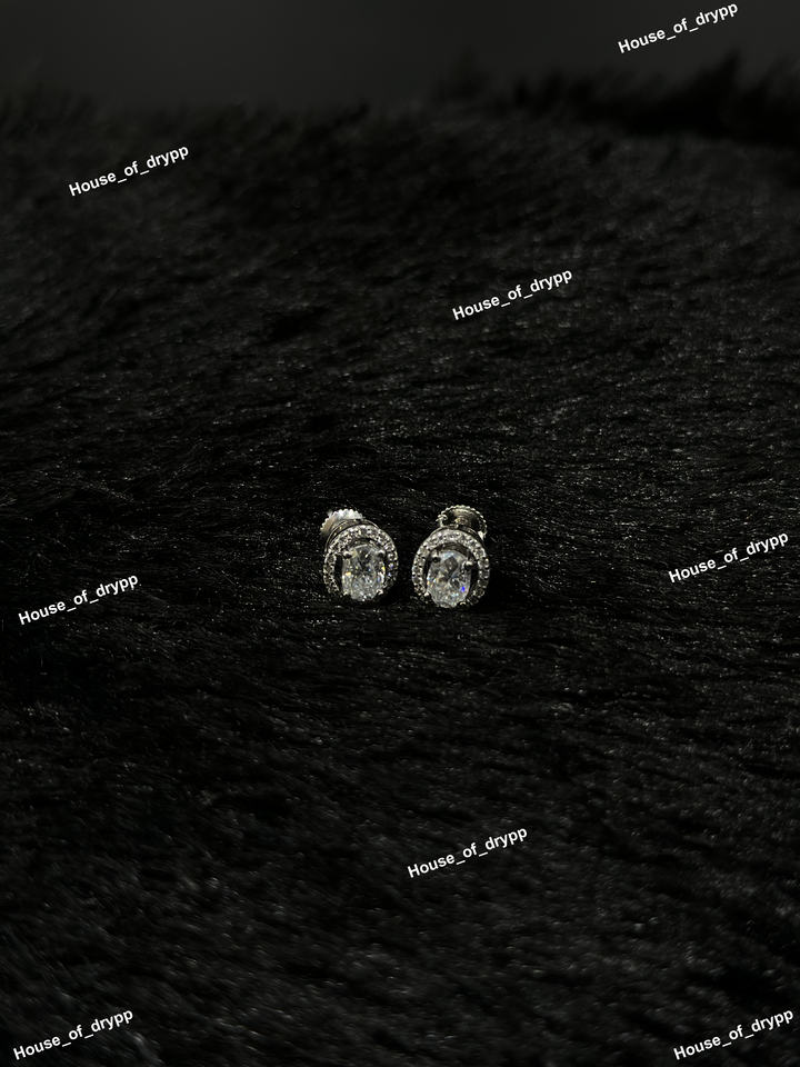 Oval Cut Moissanite Diamond Two In One Stud Earring 925 Silver Iced Out Halo Pave Set Hip Hop Unisex Party Wear Jewelry