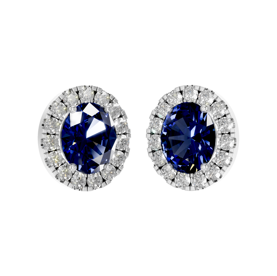 Style:Oval Shaped Natural Sapphire Gemstone Stud Earring with Diamond Halo