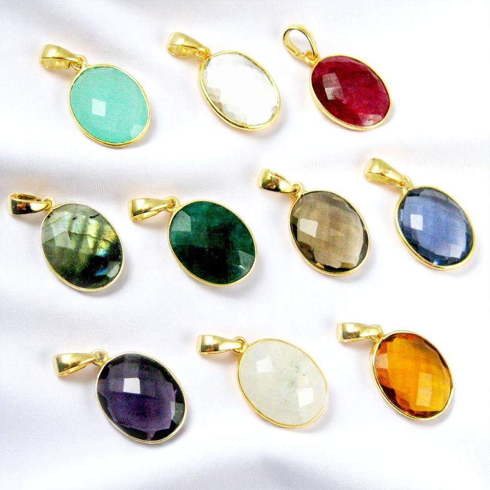 Customized Oval Emerald Gemstone Bezel Charm Pendant with Multi-Gemstone Briolette Faceted Cut Christian Religious Jewelry