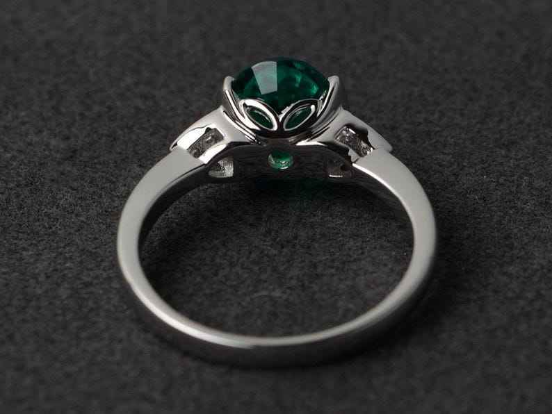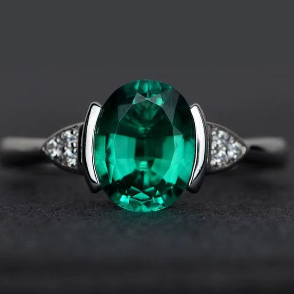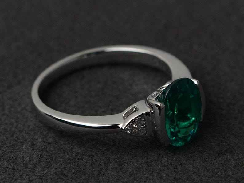 Oval Emerald Ring Silver Green Gemstone Anniversary Engagement Ring Bezel Setting Fine Jewelry For Women