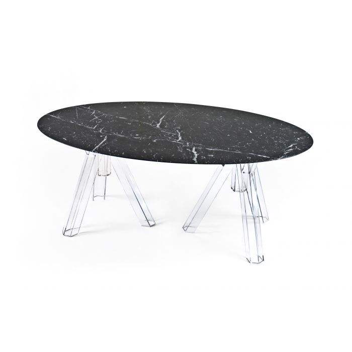 Oval Emperador Marble Dining Table Set 180x115 Ometto Transparent Base Modern Minimalist Home Furniture Model OVAL006