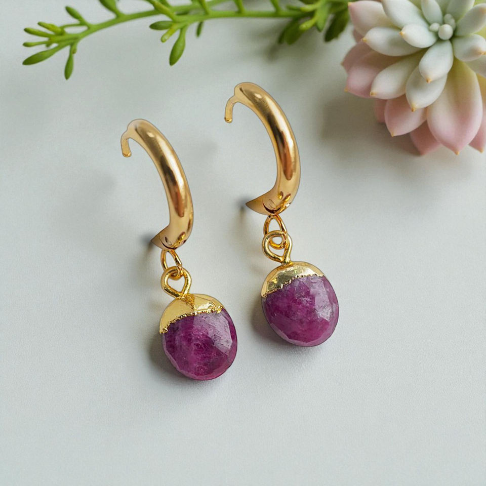 Oval Faceted Tiny Moissanite Gemstone Flat Hoops Earrings-925 Sterling Silver Gold Plated Handmade Unisex Earrings-Wholesale