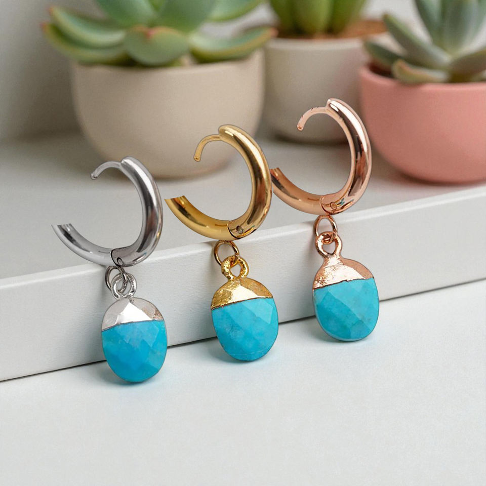 Oval Faceted Tiny Moissanite Gemstone Flat Hoops Earrings-925 Sterling Silver Handmade Earrings-Gold/Rose Gold/Silver