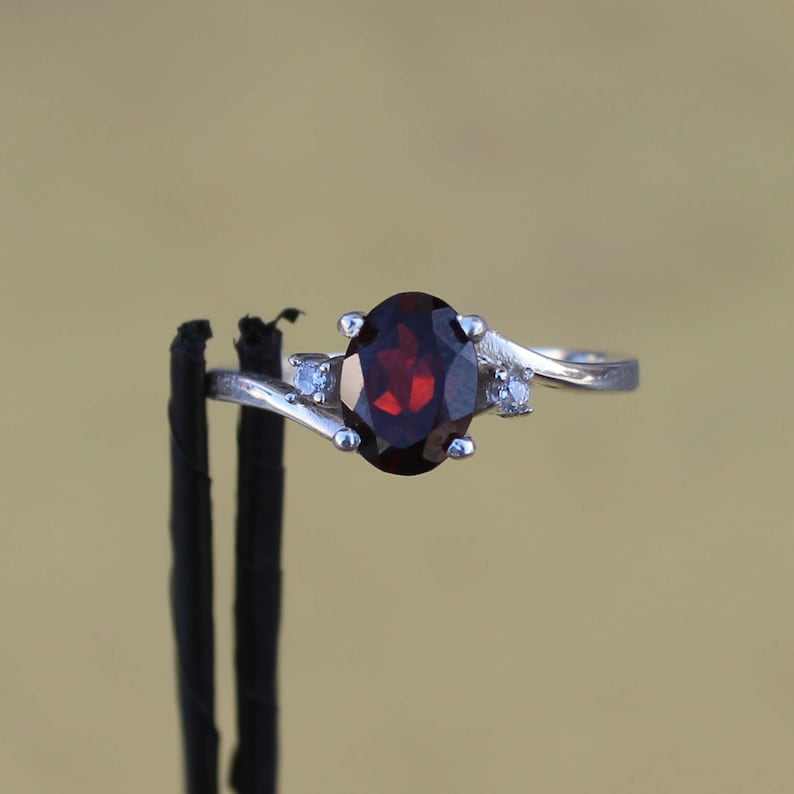 Oval Garnet Ring January Birthstone Sterling Silver Band Handmade Natural Gemstone Jewelry For Women