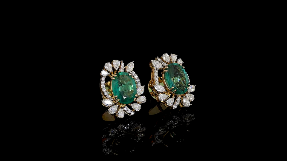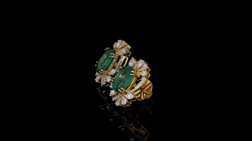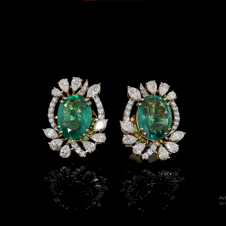 Oval Green Lab Bridal Earrings with Marquise & Pear Shape Diamond Halo | 14KT Gold Rhodium Plated Luxury Wedding Fine Jewelry