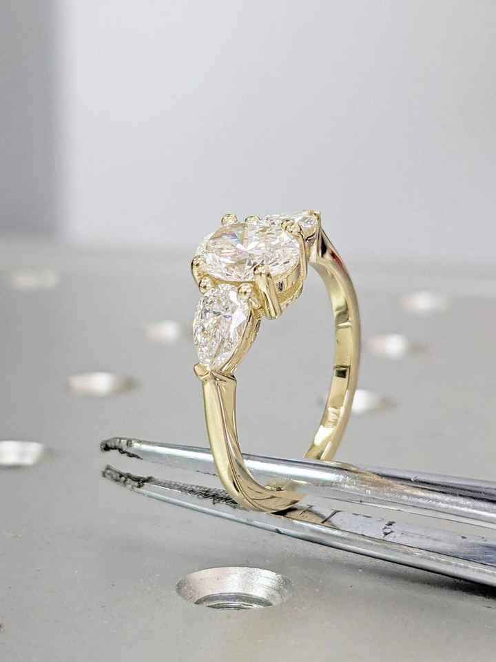 Oval Lab Created Moissanite Ring For Women Three Stone Moissanite Engagement Ring 925 Sterling Silver 14K Gold Plated