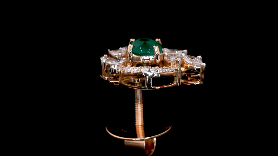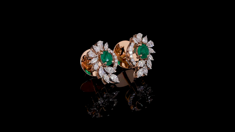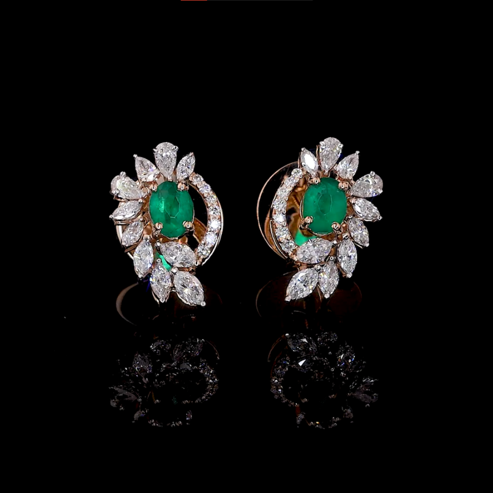 Oval Lab Green Emerald & Pear Shape Diamond Halo Stud Earrings in Gold | OEM ODM Fine Jewelry Supplier