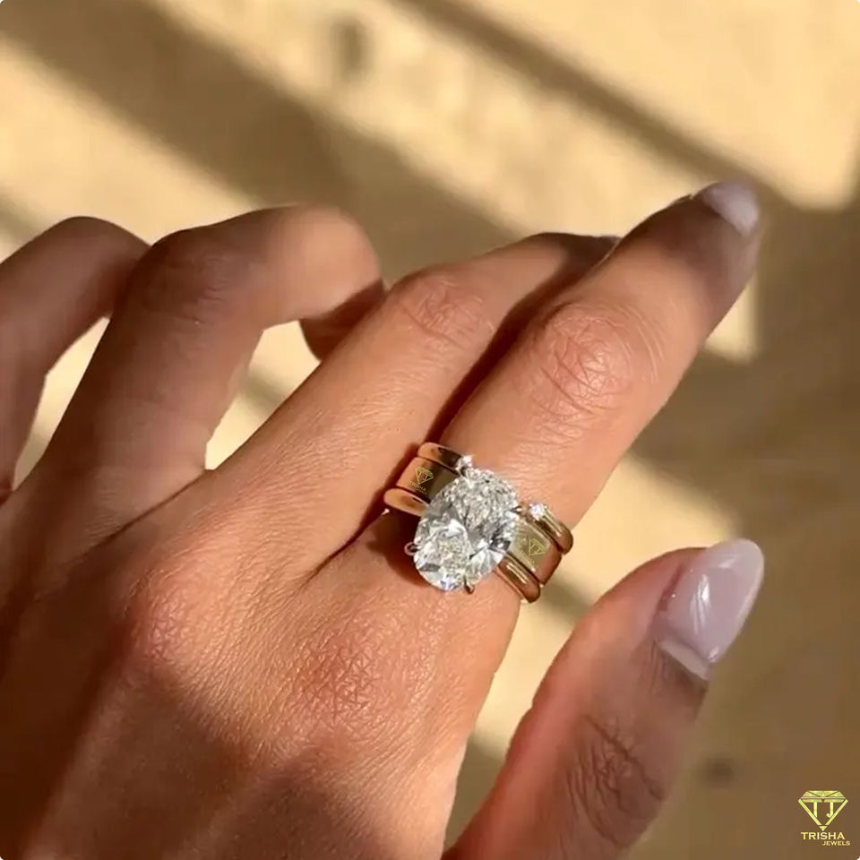 Oval Lab Grown Solitaire Engagement Ring Tulip Basket Setting, Moval Cut Wedding Band, Handmade by TrishaJweles