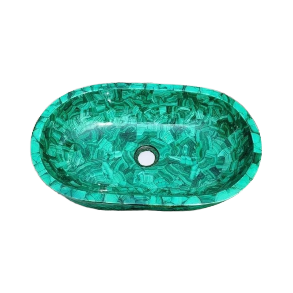 Oval Malachite Bathroom Sink Handmade Decorative Vanity Room Basin for Hotel and Office