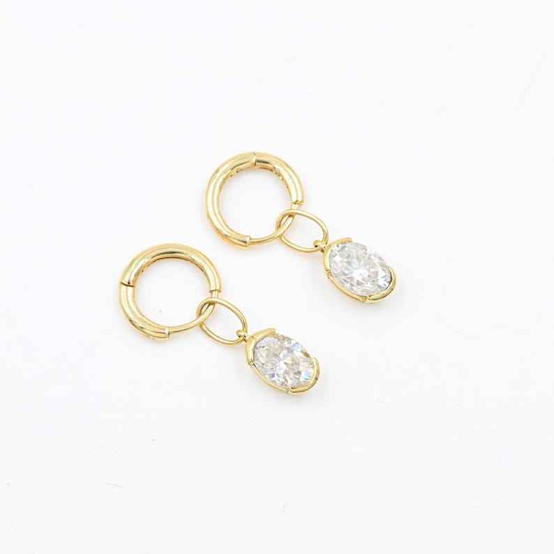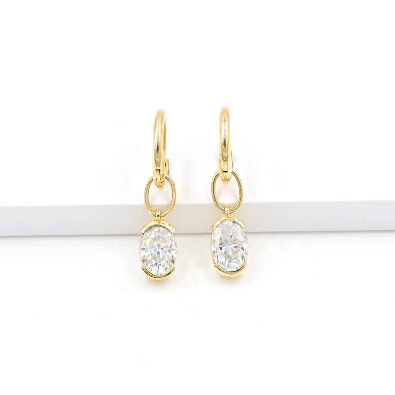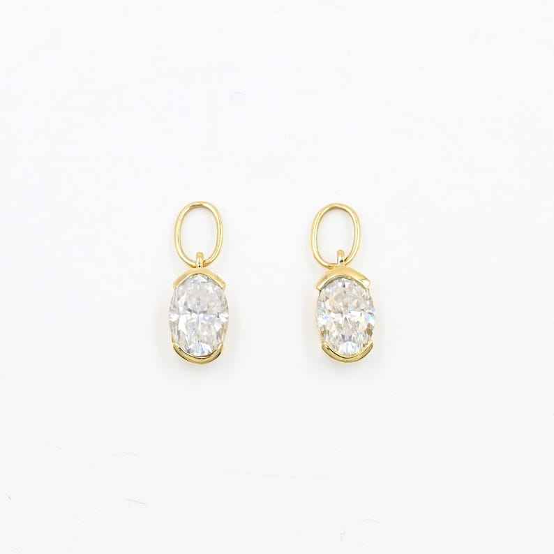 Oval Moissanite Charms 7x5mm 14k Solid Dangles Huggie Hoops Necklace Bracelet Belly Ring April Birthstone Jewelry