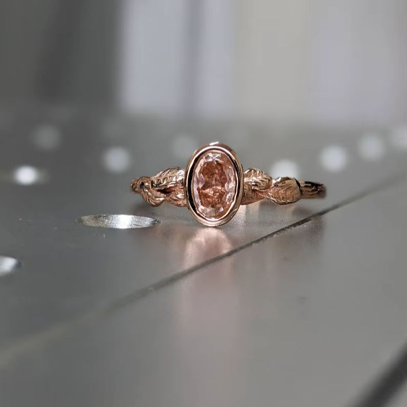 Oval Morganite Engagement Ring Vintage Floral Morganite Ring 925 14k Rose Gold Plated Floral Engagement Ring