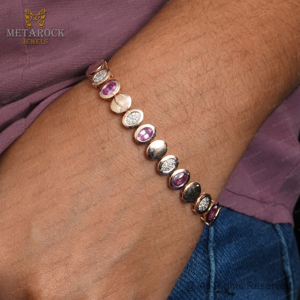 Bracelet Name:Oval Pink Sapphire Diamond 14k Gold Bracelet