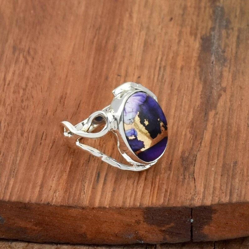 Oval Purple Oyster Turquoise Ring in 925 Sterling Silver Zigzag Band Statement Jewelry for Women Birthday Gift