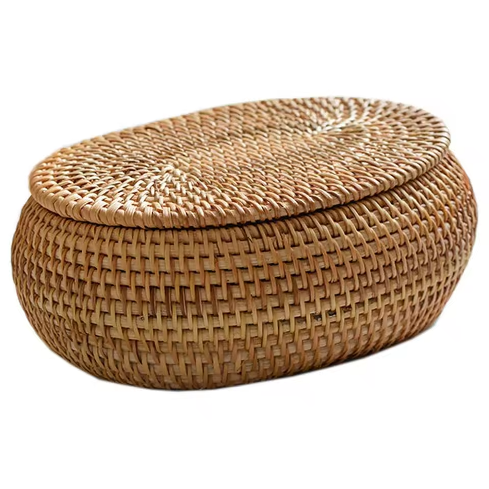 Name:Oval Rattan Box Storage Baskets Size: L6,7 x W5,5 x H2,8 inch